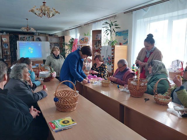 Майстер клас з декорування великоднього кошика своїми руками, щоб святкування Паски було незабутнім і виглядало дуже барвисто, провела бібліотекар Оксана Сергійчук. Прикраси зроблені клубівцями, вийшли дуже оригінальними, а великодні кошики - неперевершеними!